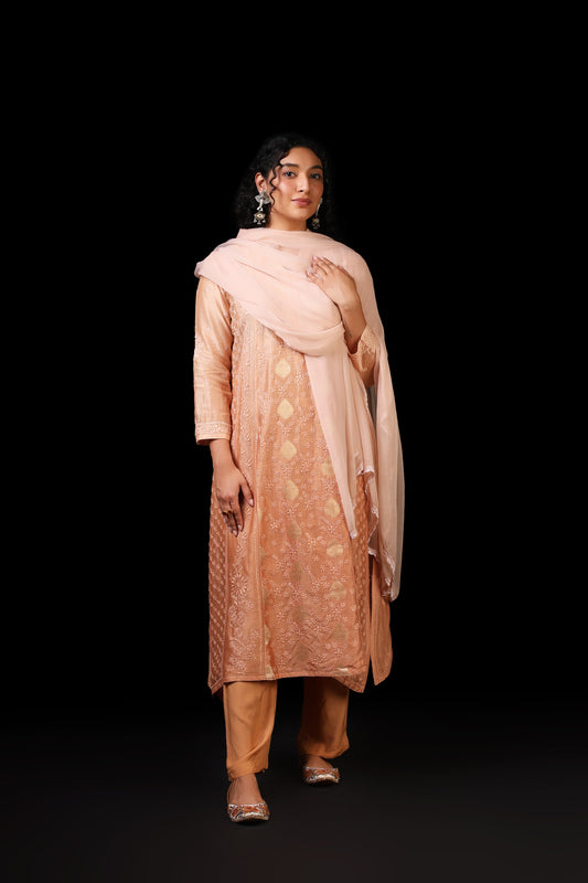 Banarasi Chanderi Anarkali (Symmetric Pattern)