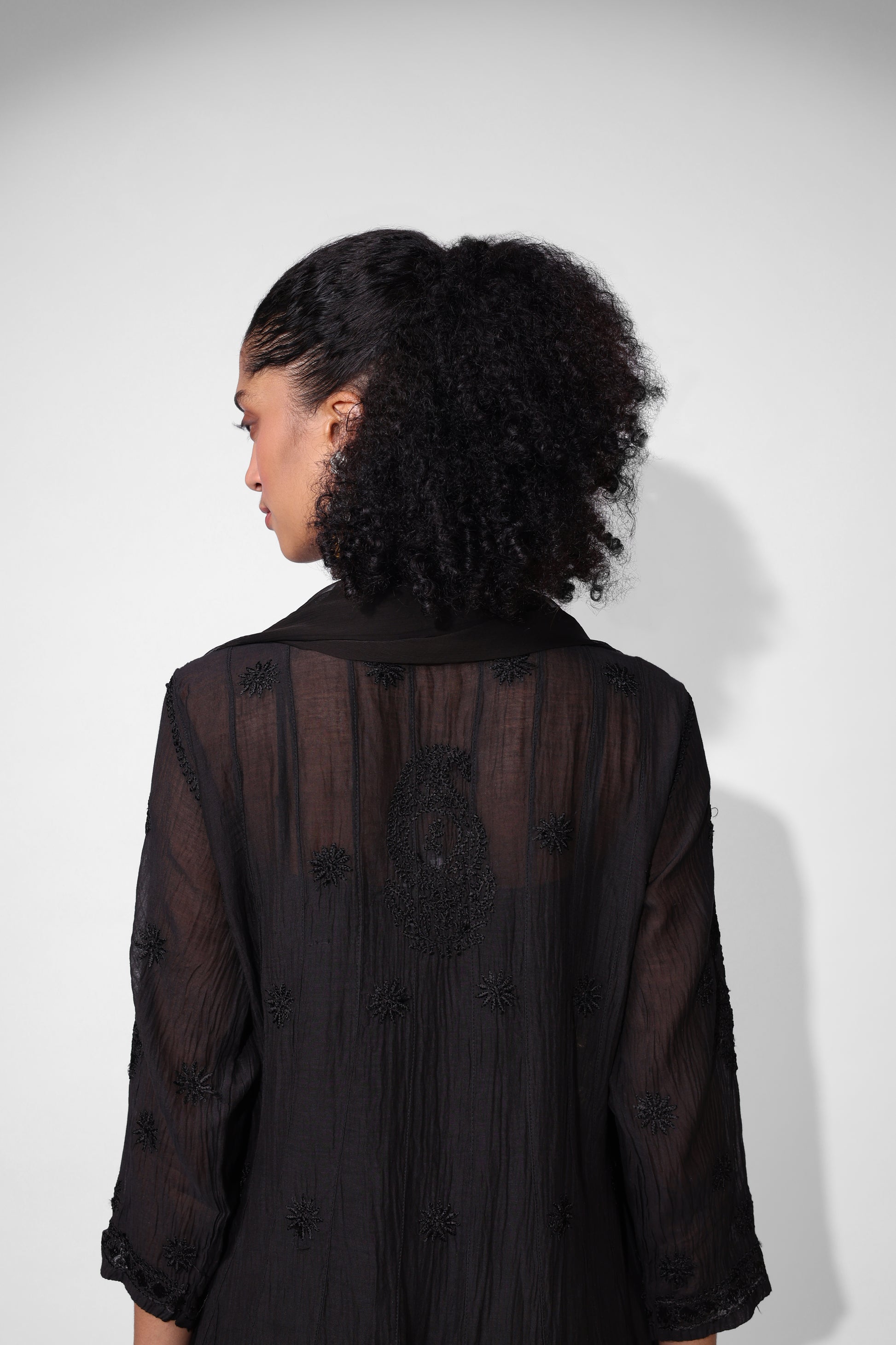 Banarasi Chanderi Anarkali (Black Symmetric Pattern)