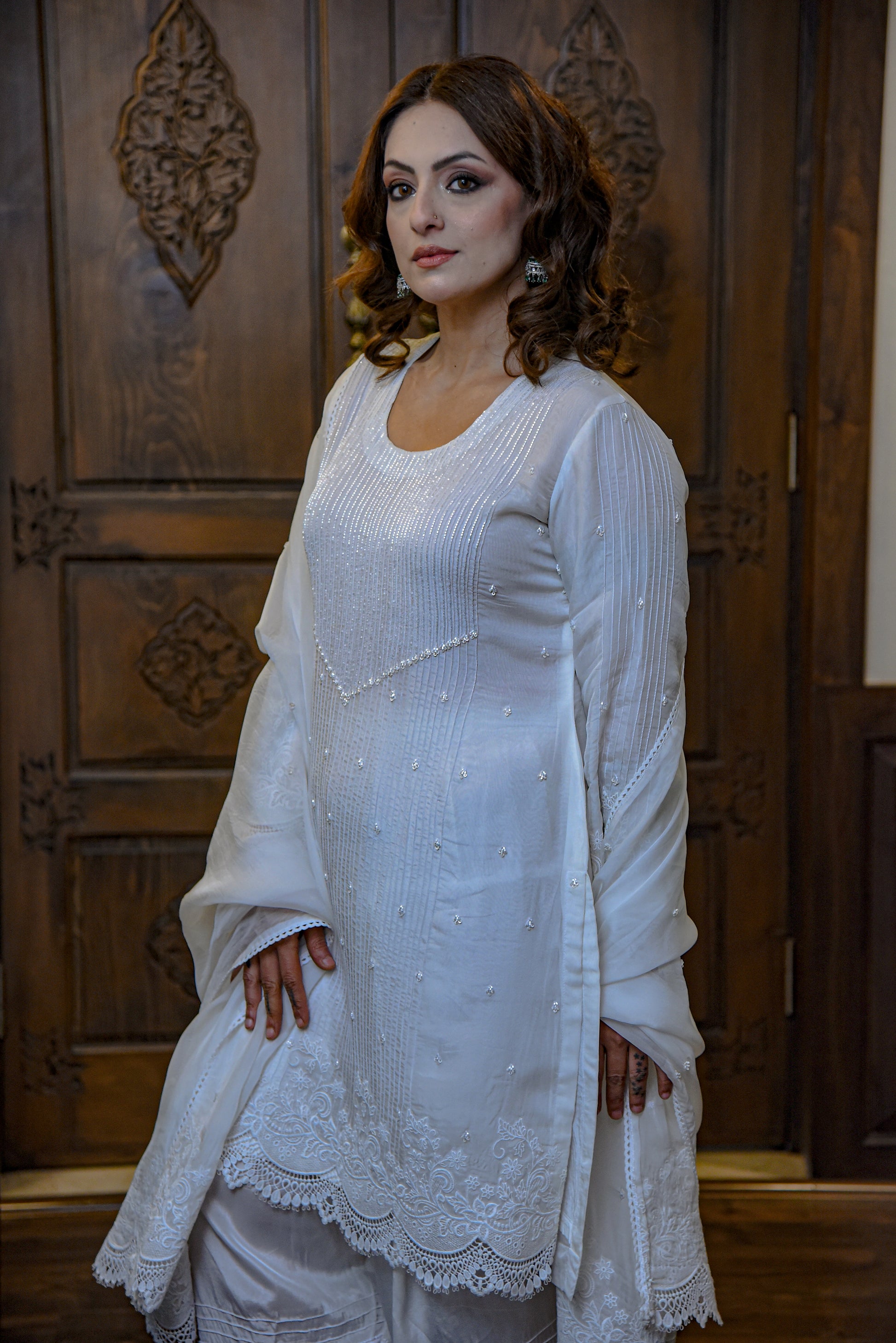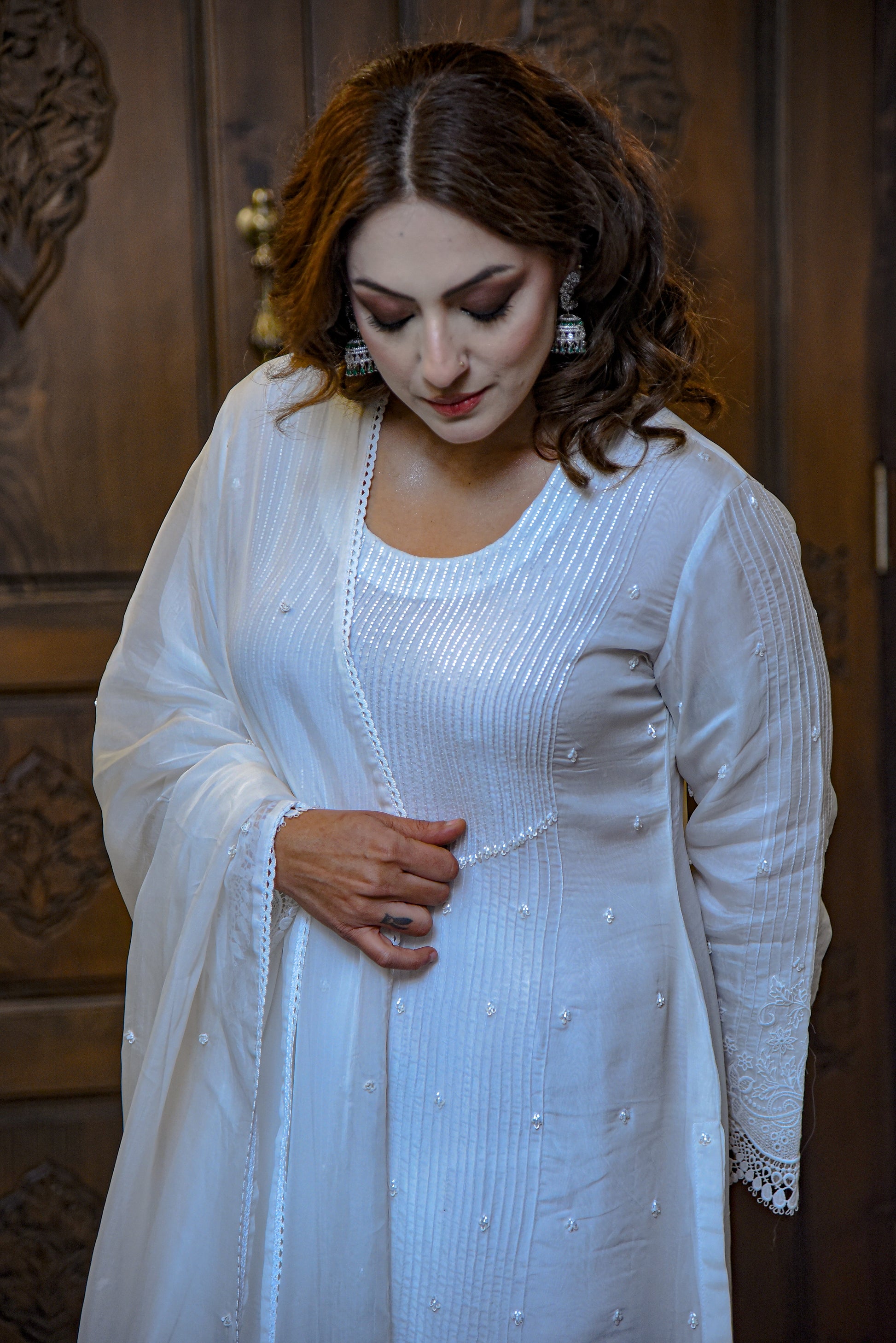 Pastel Hues of Soft and Silky Crepe with Cut work Applique in Beautiful Floral Patterns and Organza Silk Dupatta