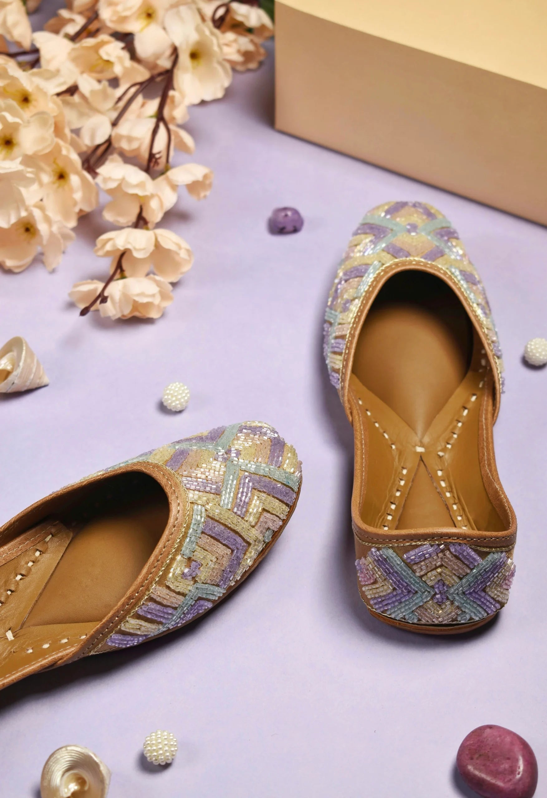 Indulge in luxury and tradition with our handmade double cushioned leather juttis adorned with exquisite work. Crafted with meticulous attention to detail, each pair seamlessly blends elegance and comfort. Elevate your ensemble with timeless style and unparalleled craftsmanship.