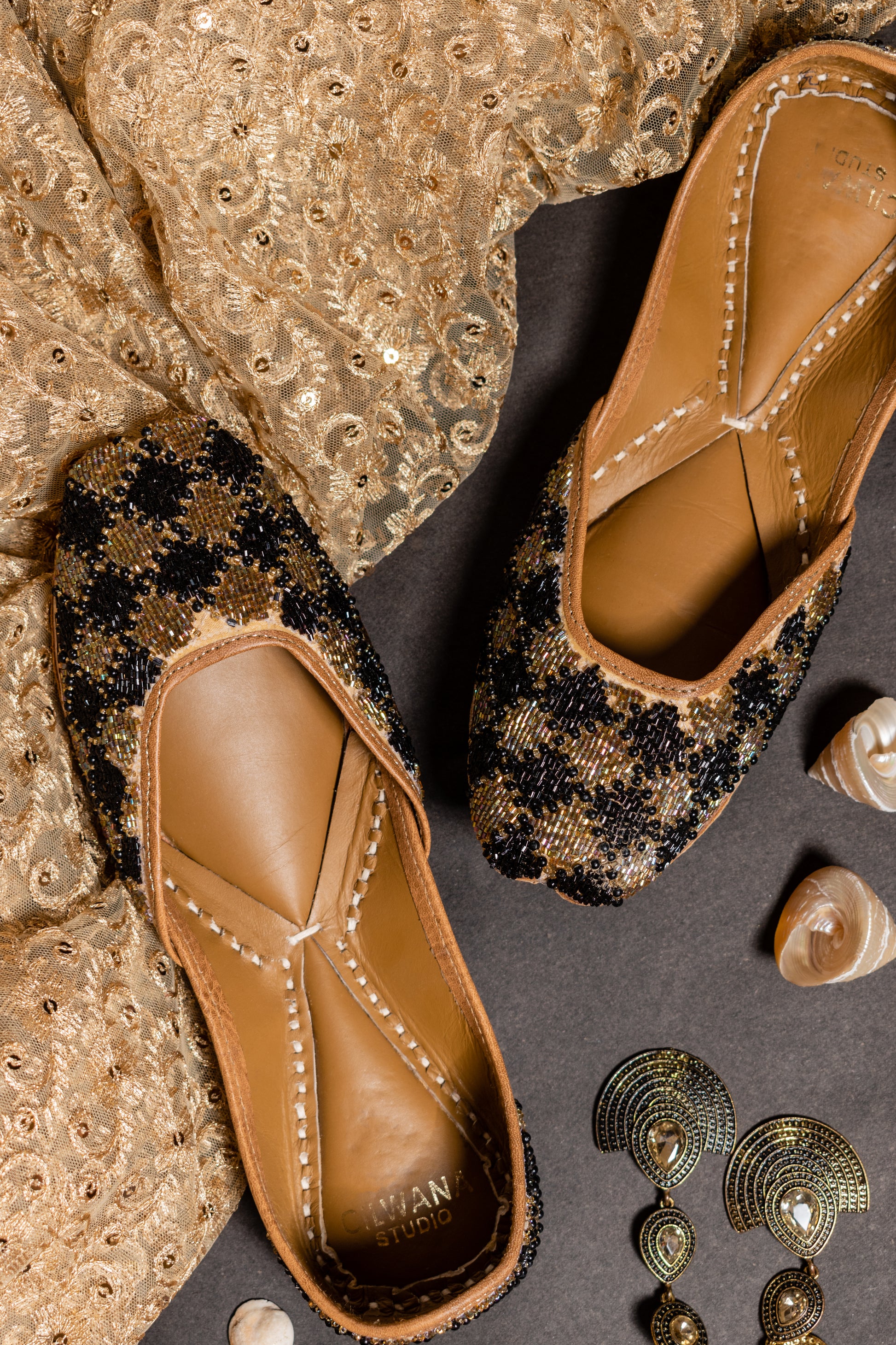 Indulge in luxury and tradition with our handmade double cushioned leather juttis adorned with exquisite work. Crafted with meticulous attention to detail, each pair seamlessly blends elegance and comfort. Elevate your ensemble with timeless style and unparalleled craftsmanship.