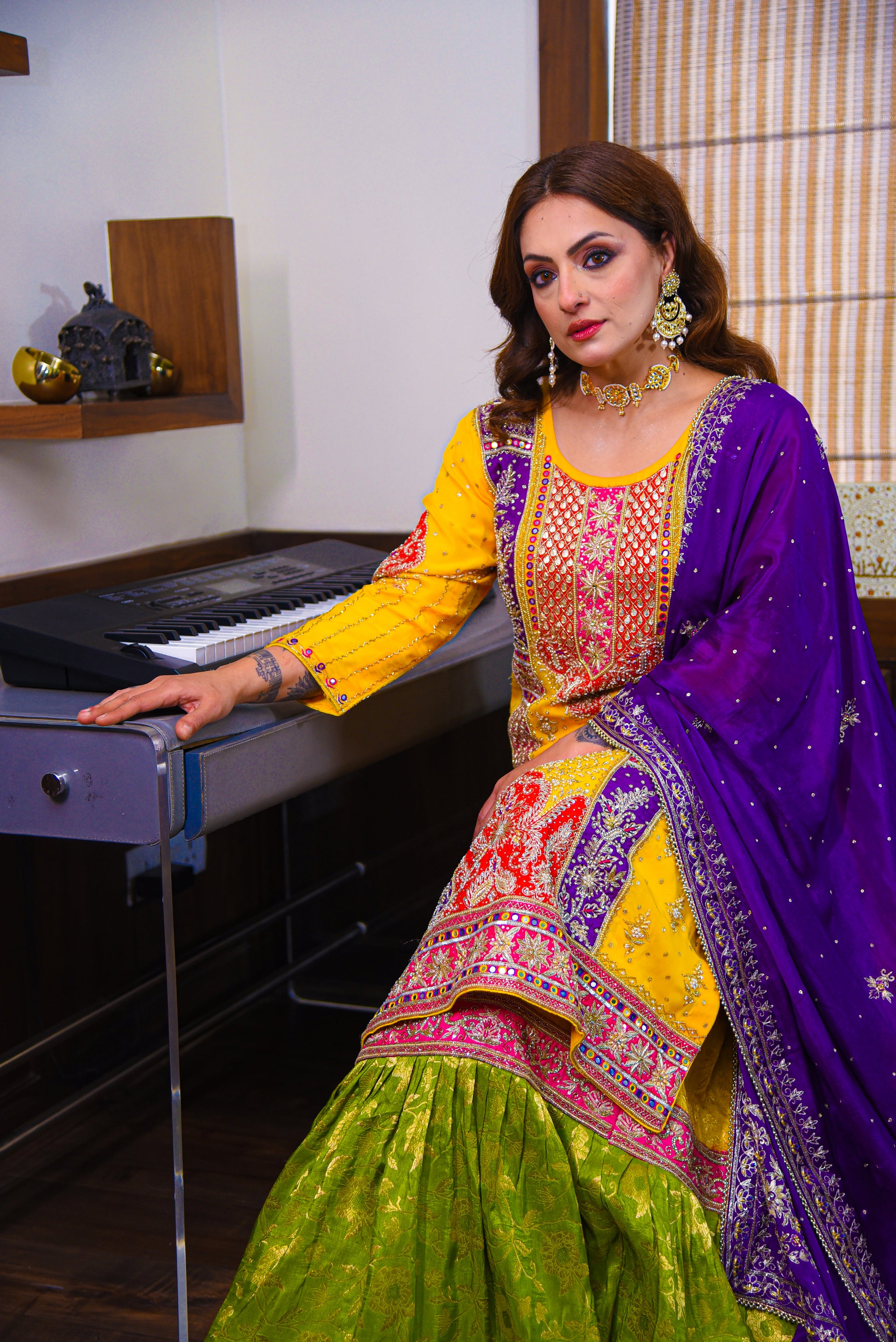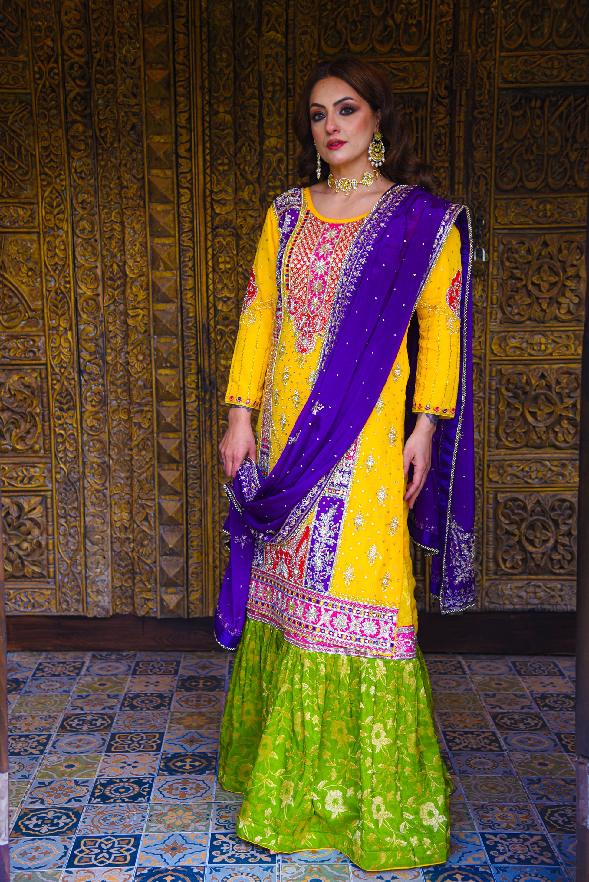 Introducing our Exclusive Handcrafted Range of Bridal Outfits curated using Premium Fabrics on Beautiful Soulful colours! Pure Tissue Rose Pink Shirt with Heavy Loaded Dabka Zardosi along palette designed fully embellished Dupatta having detailed borders on the same base and a Jamdani Farshi Garara.