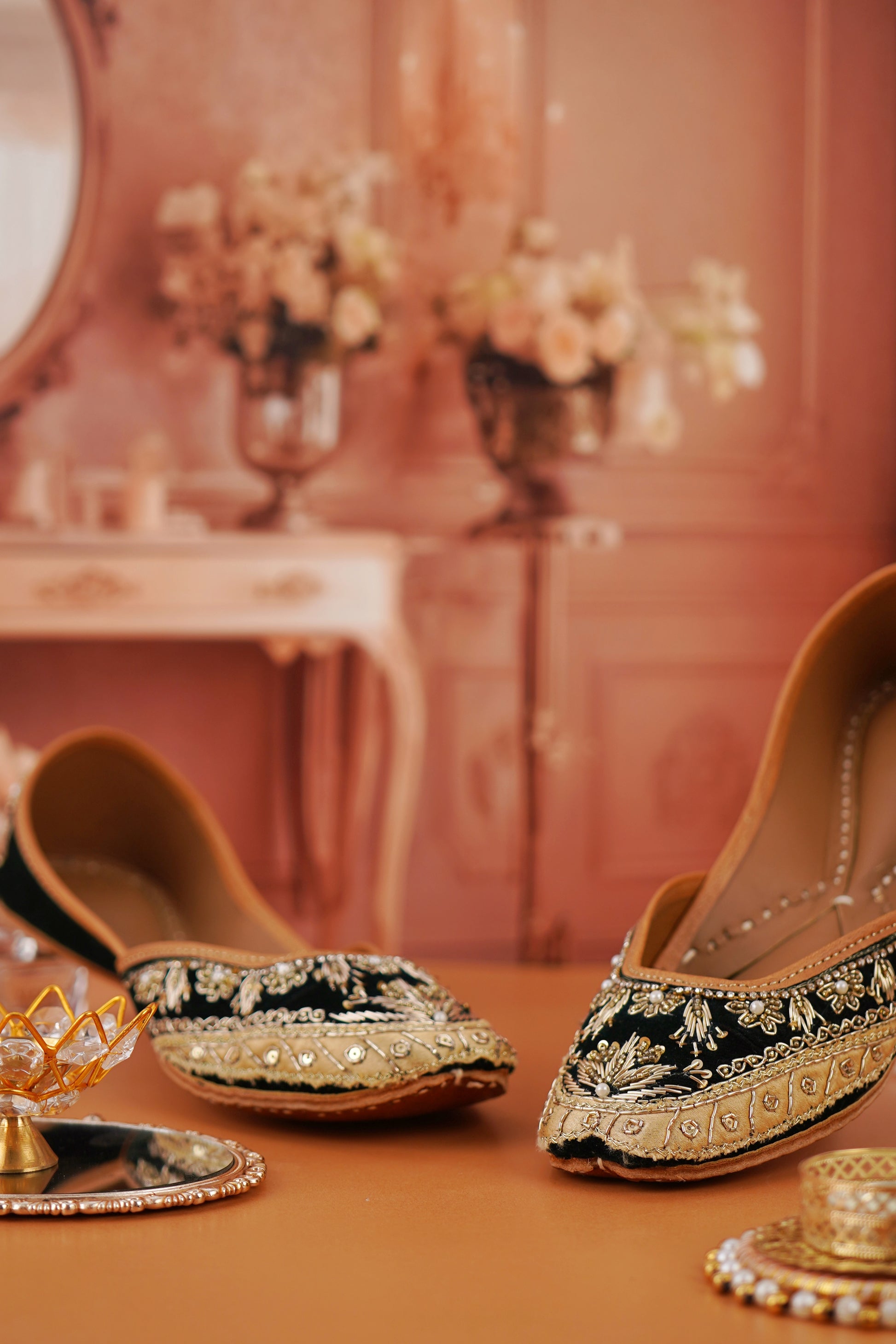 Indulge in luxury and tradition with our handmade double cushioned leather juttis adorned with exquisite dhabka work. Crafted with meticulous attention to detail, each pair seamlessly blends elegance and comfort. Elevate your ensemble with timeless style and unparalleled craftsmanship.