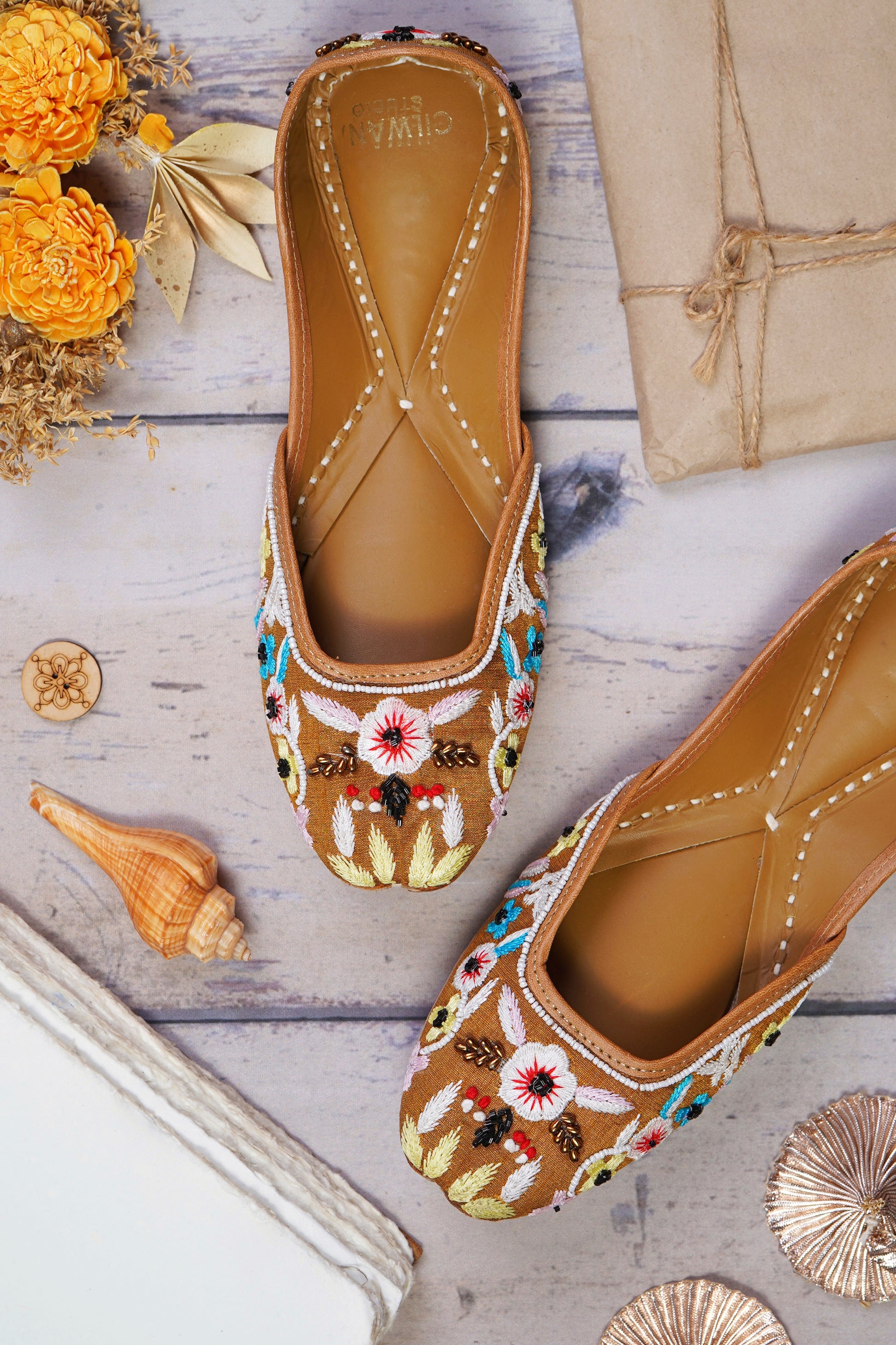 Indulge in luxury and tradition with our handmade double cushioned leather juttis adorned with exquisite sozni work. Crafted with meticulous attention to detail, each pair seamlessly blends elegance and comfort. Elevate your ensemble with timeless style and unparalleled craftsmanship.