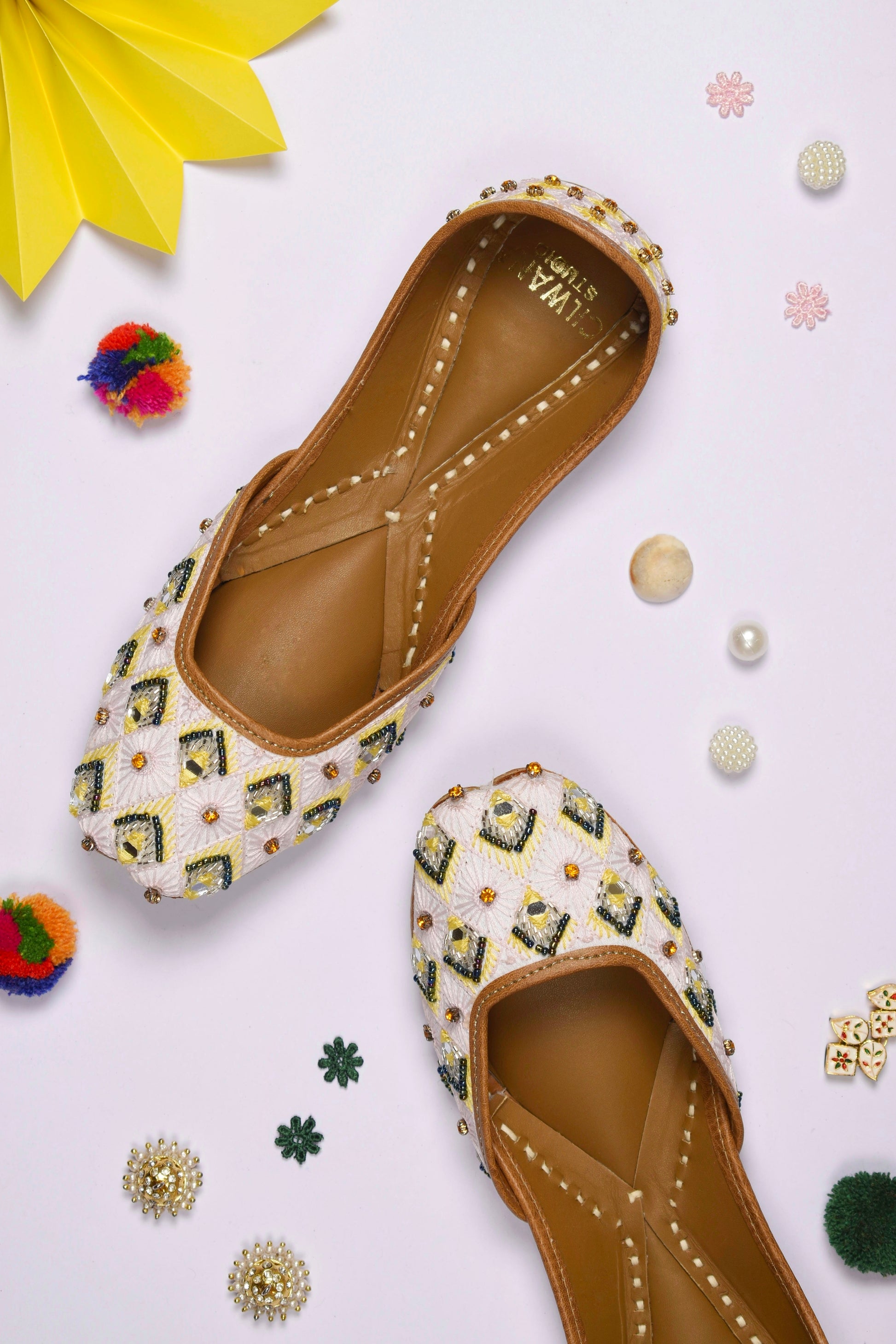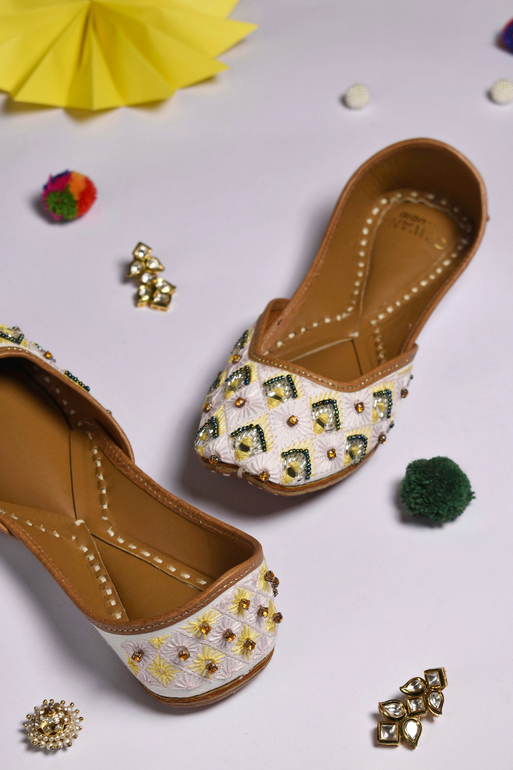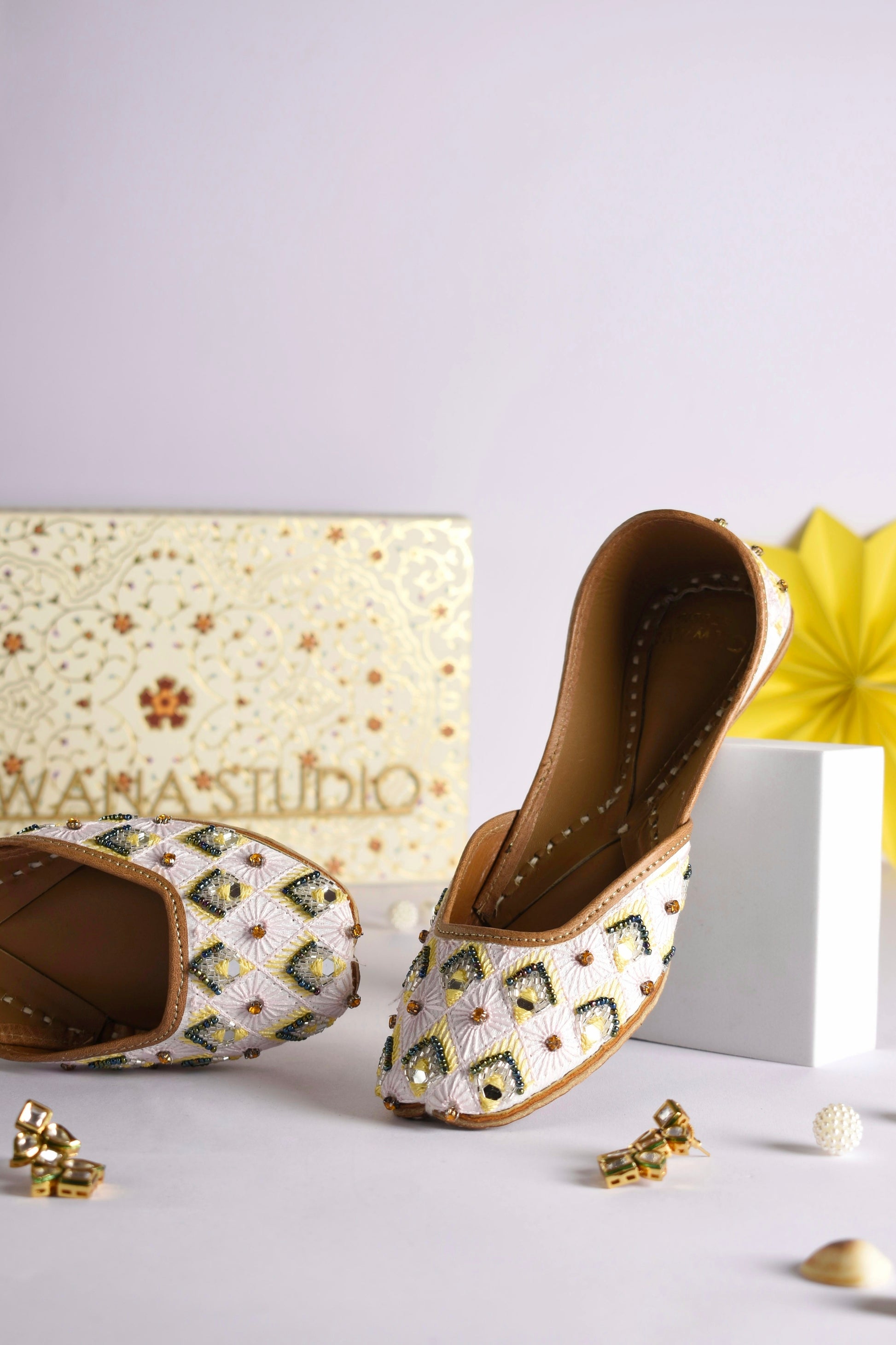 Indulge in luxury and tradition with our handmade double cushioned leather juttis adorned with exquisite sozni work. Crafted with meticulous attention to detail, each pair seamlessly blends elegance and comfort. Elevate your ensemble with timeless style and unparalleled craftsmanship.